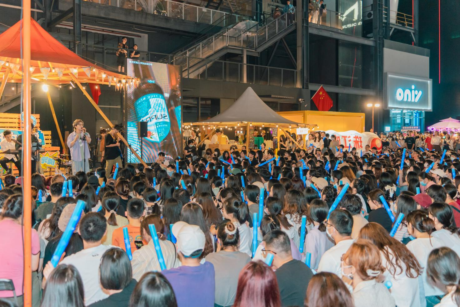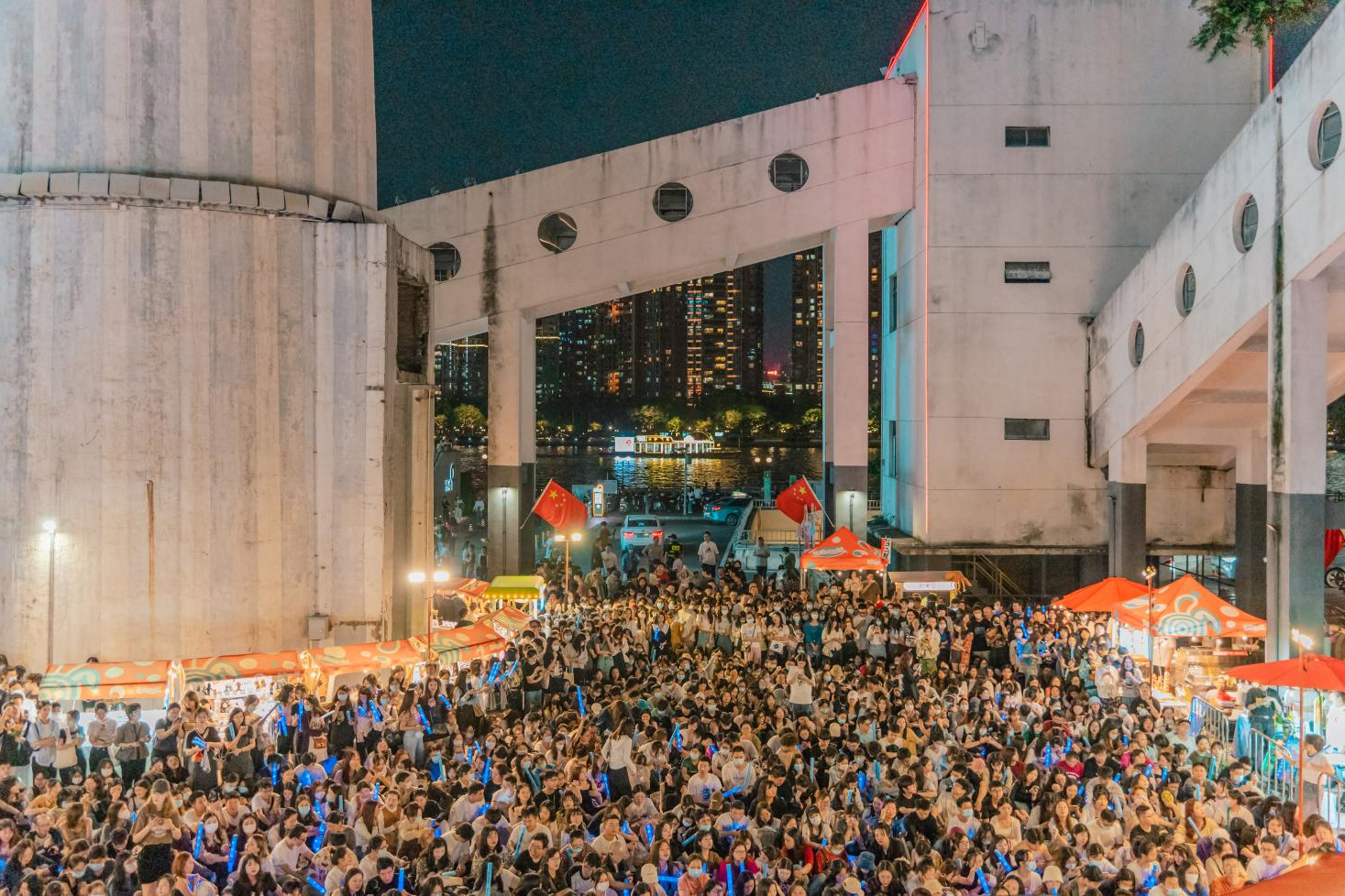 结合草地露营与工业旧改特色,向粉丝派发“珠江啤酒X白鲸乐队”定制应援棒,在微醺与音浪中打造千人蓝色“海洋”出圈场景,展现出广州夜生活的浪漫情调。