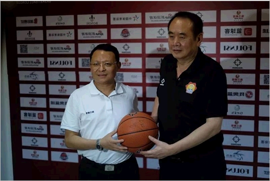 广东省篮球协会主席刘克军(左)与珠江啤酒总经理王志斌(右)